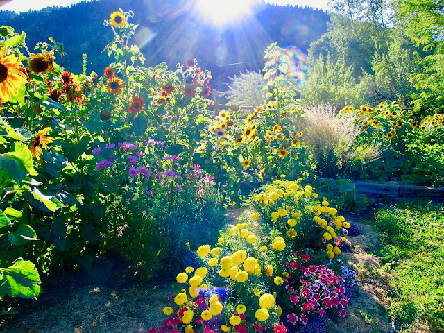 | By the time we return, this area will be alive with colorful zinnias and sunflowers complementing the marigolds. The fig tree will have grown dozens and dozens of fruits that won't yet be ripe enough eat. |
